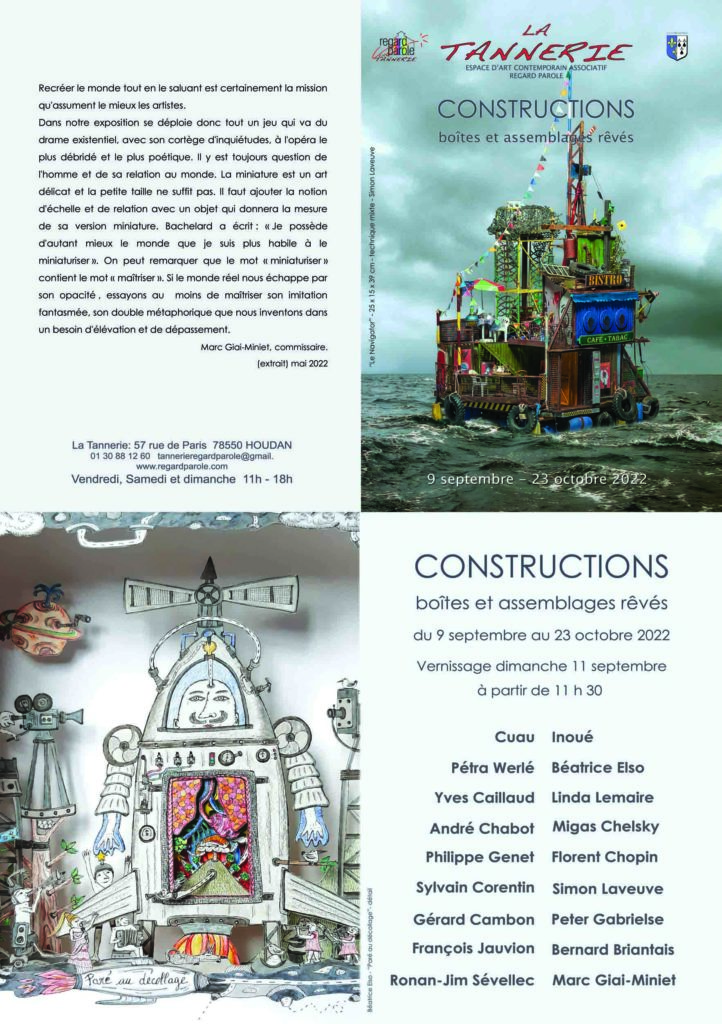 Boîtes et Assemblages rêvés La Tannerie- 57 rue de Paris78550 Houdan Du 9 septembre au 23 octobre2022vendredi, samedi et dimanchede 11h à 18hvernissage dimanche 11 septembreà partir de 11h30