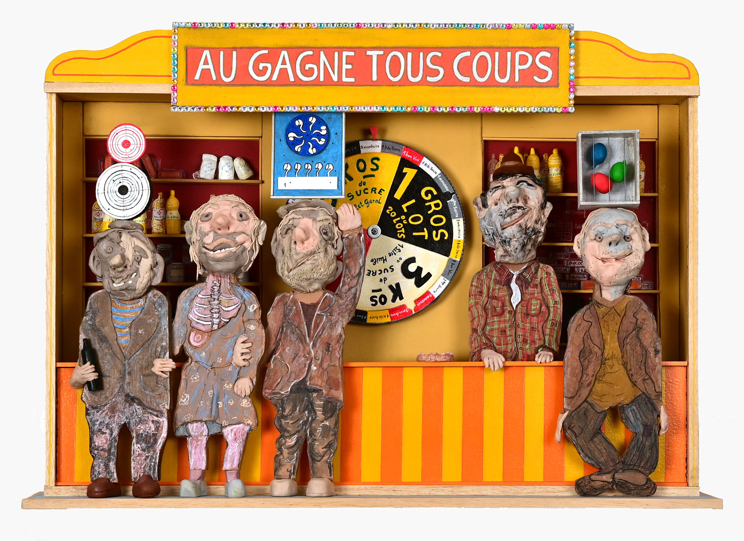 « Lorsque j’ai découvert les figures en volume de Bernard Briantais, j’ai compris qu’il avait trouvé là le plus juste de son expression. Boîtes habitées, cageots, caisses, cadres de scène, castelets, théâtres de la vie : nous y sommes, nous sommes dans cette réalité de bric et de broc, ce bricolage de nos vies et des vies que nous côtoyons, parfois sans les voir, cette récupération de tout et de n’importe quoi, du magistral et du minimal, du grandiose et de l’infime, du supraordinaire et de l’infraordinaire, pépites et déchets, richesse et pauvreté. Parce que nous sommes tous, entre nos ombres et nos lumières, monstres et animaux et démunis et risibles, mais si fragiles, mais si bancals, mais si touchants, mais si délicats. »