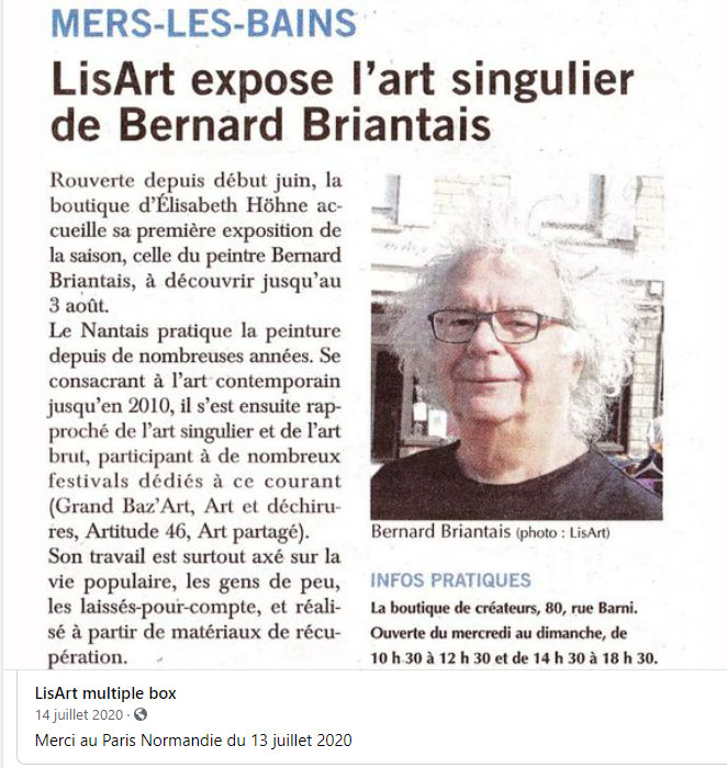 Les clochards inspirent Bernard Briantais L’artiste expose dans la toute nouvelle galerie Perrine-Humeau, spécialisée dans l’art singulier, jusqu’à la fin de l’année. « Quand je suis passé à Paris, j’ai