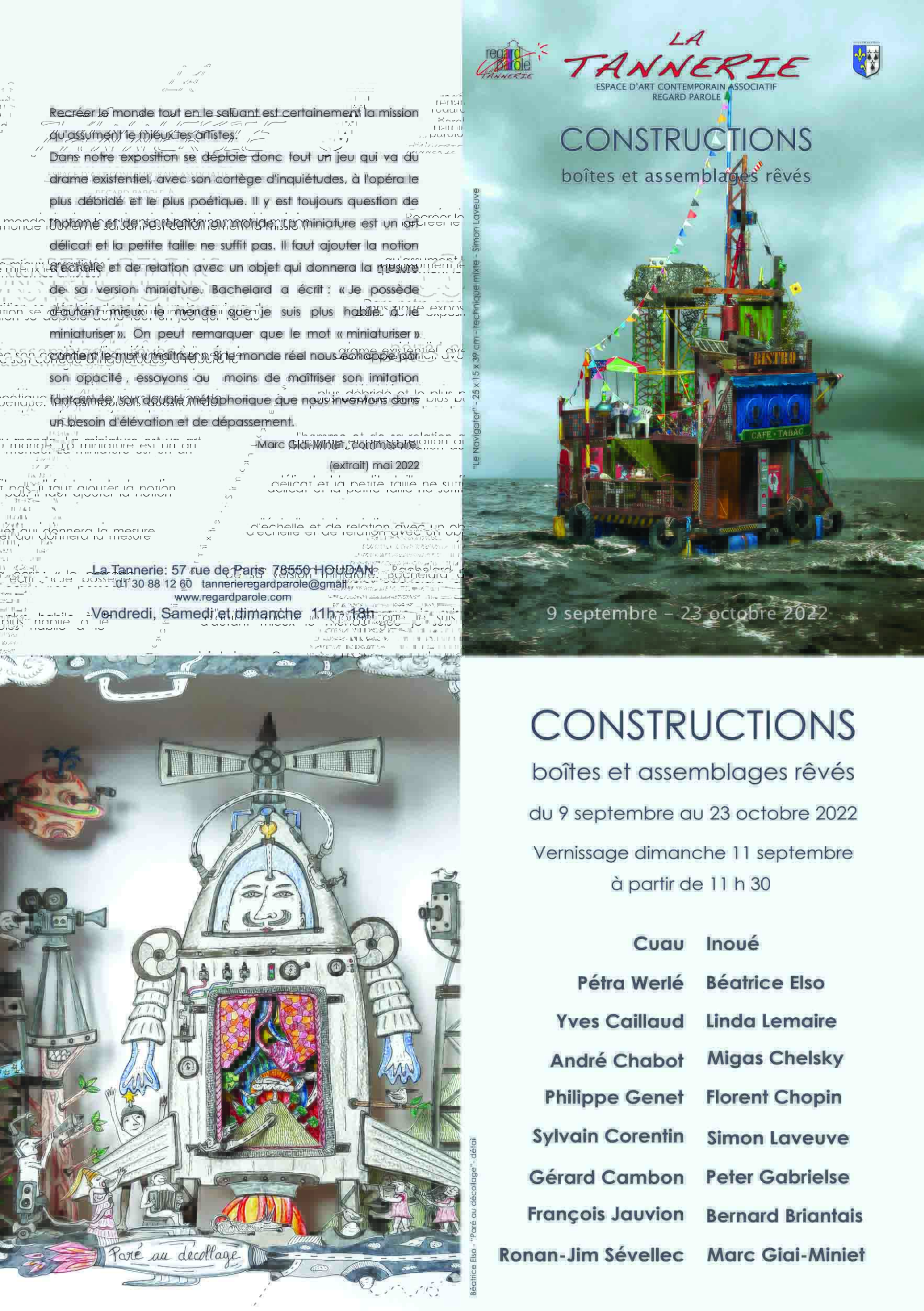 In Actualités Boîtes et Assemblages rêvés La Tannerie- 57 rue de Paris78550 Houdan Du 9 septembre au 23 octobre2022vendredi, samedi et dimanchede 11h à 18hvernissage dimanche 11 septembreà partir de 11h30