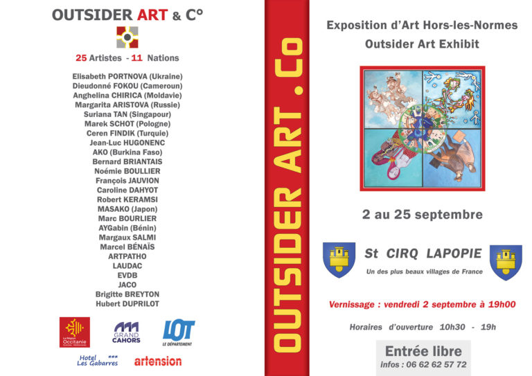 In Actualités OUTSIDER ART & C0 présente 25 artistes 11 Nations :à St CIRQ LAPOPIEdu 2 au 25 septembrevernissage le 2 septembre à 19h