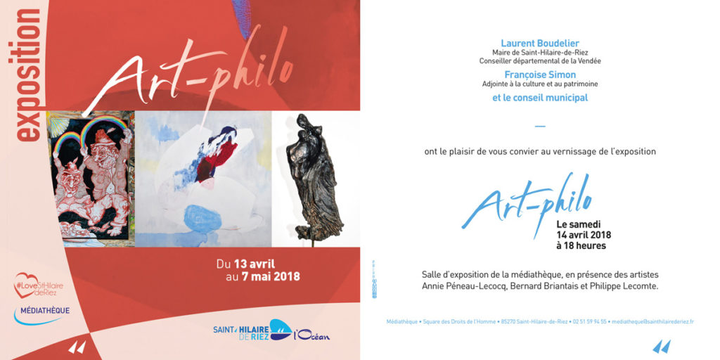 Salle d’exposition de la médiathèque, en présence des artistes Annie Péneau-Lecocq, Bernard Briantais et Philippe Lecomte.