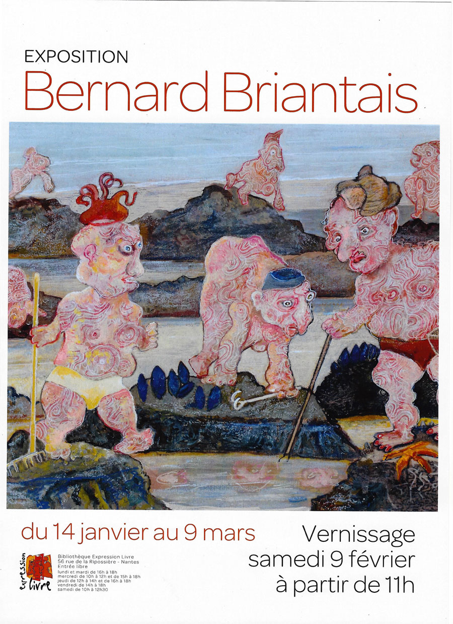 In Actualités, Non classé du 14 janvier au 9 mars 2019 VernissageSamedi 9 février à partir de 11hEntrée libreLundi et mardi de 16h à 18hMercredi de 10h à 12h et de 15h à 18hJeudi de 12h à 14h et de 16h à 18hVendredi de 14h à 18hSamedi de 10h à 12h30 .Bibliothèque Expression Livre • 56 rue de la Ripossière • Nantes