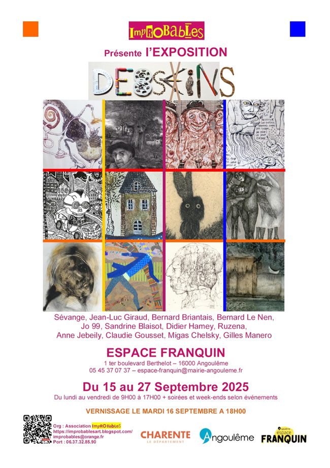 In Actualités Du 15 au 27 septembre 2025 à Angoulême Espace Franquin Vernissage le mardi 16 septembre à 18h Du lundi au vendredi de 9h00 à 17h00 Soirées et week-ends selon évènements