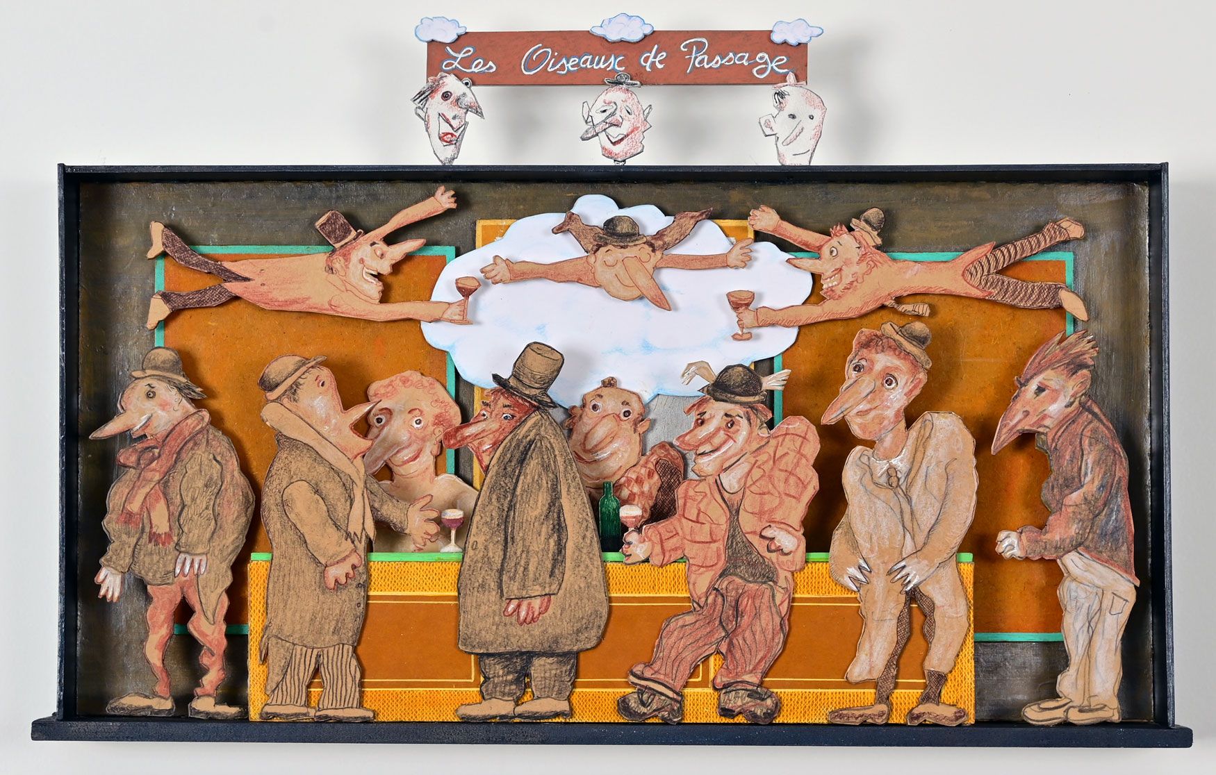 In Boites habitées, Les oiseaux de passage « Il n’y a que l’art, sans doute, et les conversations de bistrot pour nous donner soudain le sentiment d’une confusion de l’étrange et du familier. Tout à coup nous sommes au centre du monde, et aux lisières du monde. » Jean Claude Pirotte, Plis perdus.