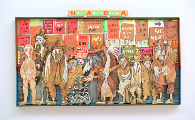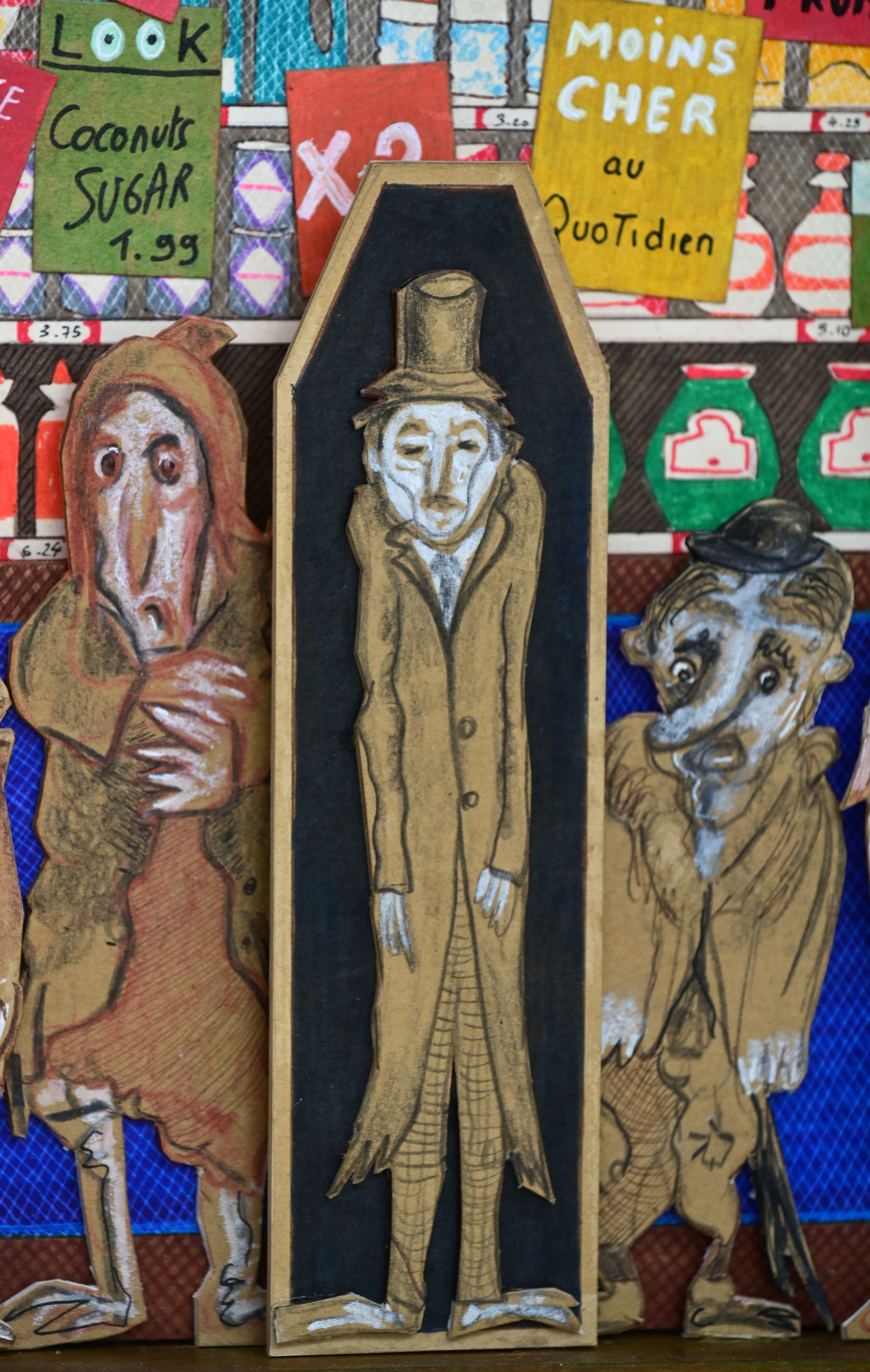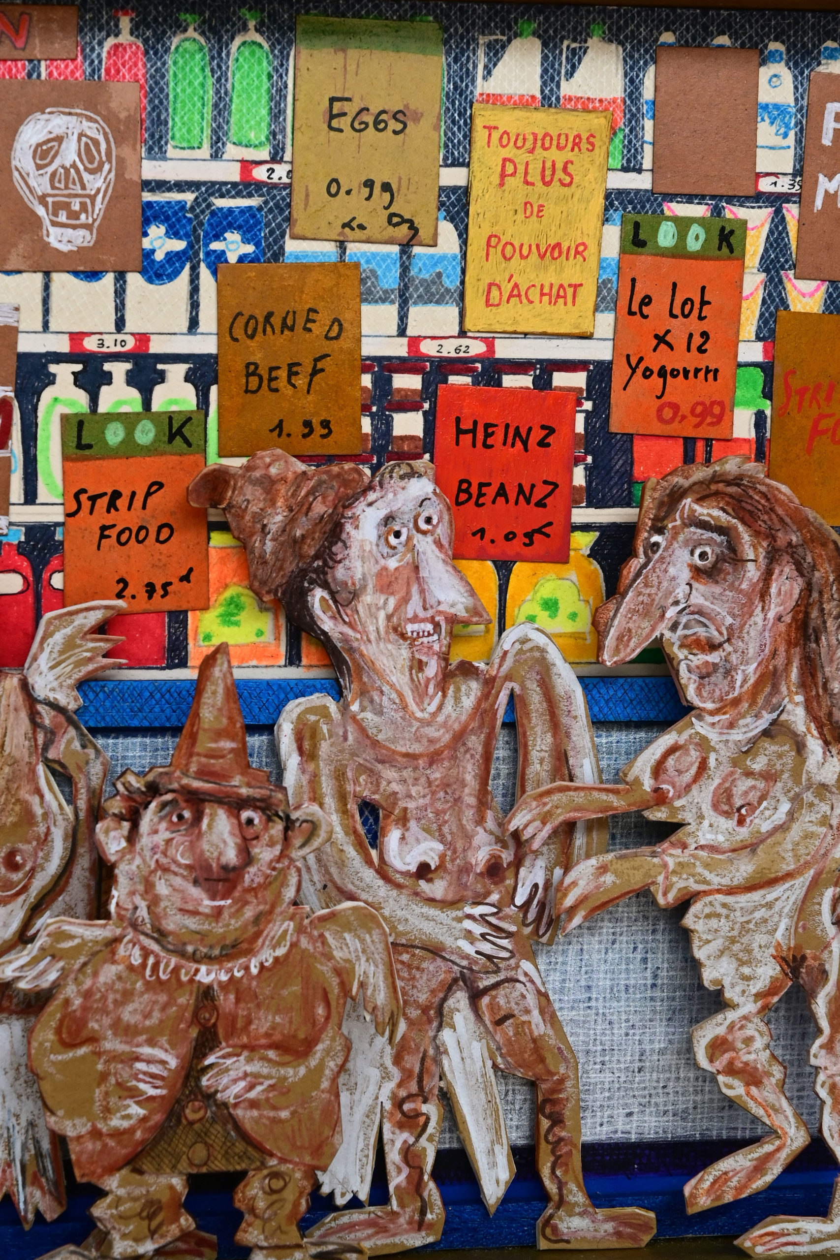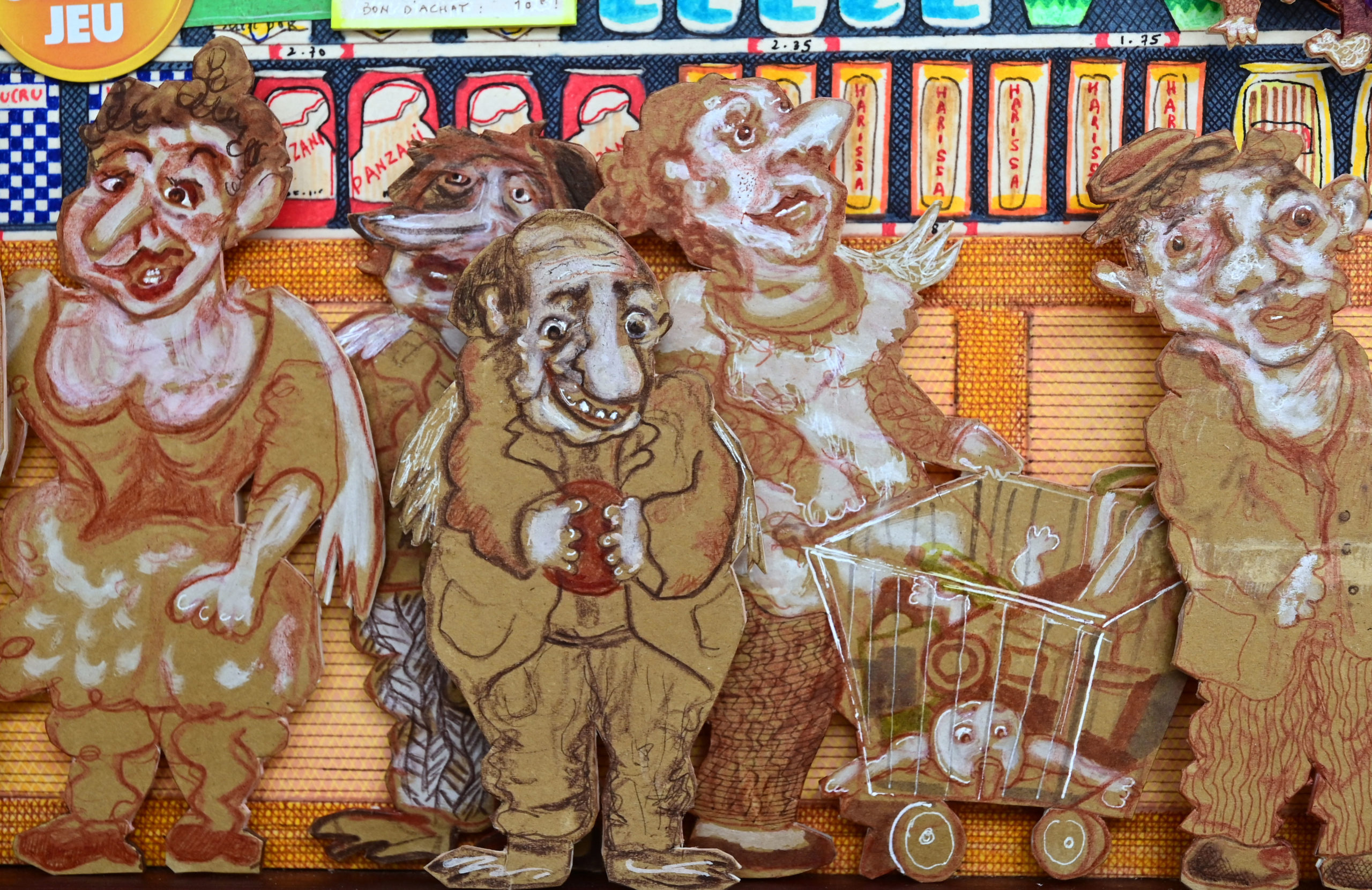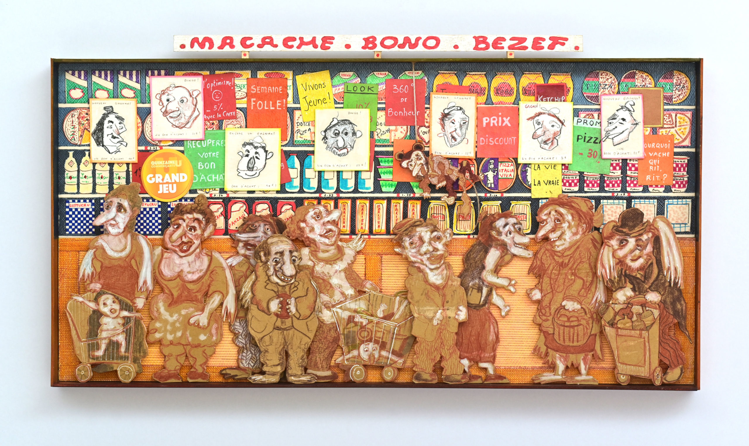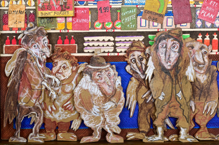 In Boites habitées, Dernières créations, Les pousseurs de caddies Au cours d’une vie, on marcherait 3800 km derrière un caddy (d’où, sans doute, le nom de supermarché).Ça en fait du chemin dans l’autre sens si on a oublié le beurre.Hervé Le Tellier