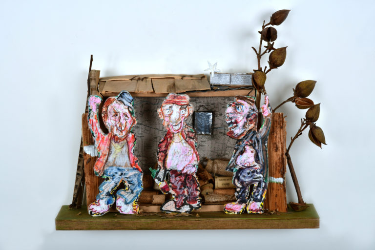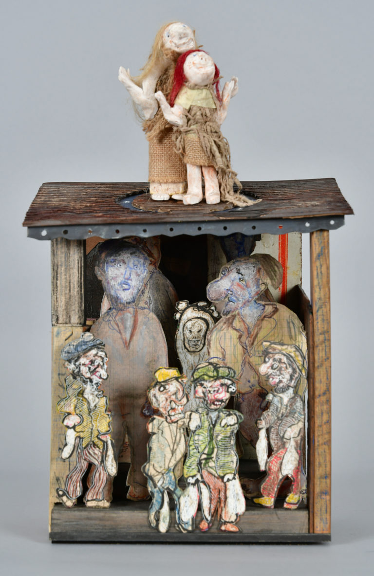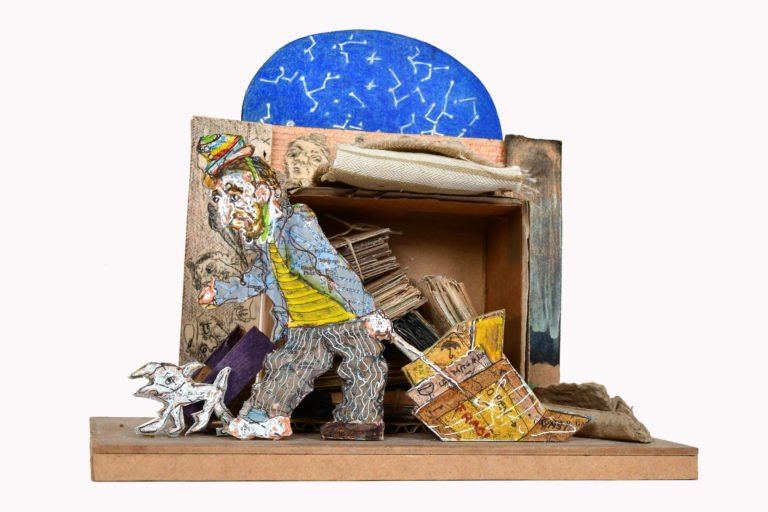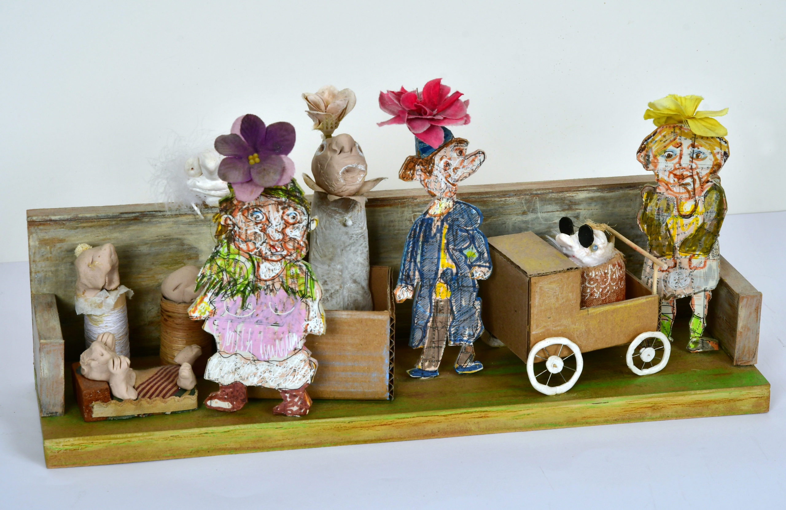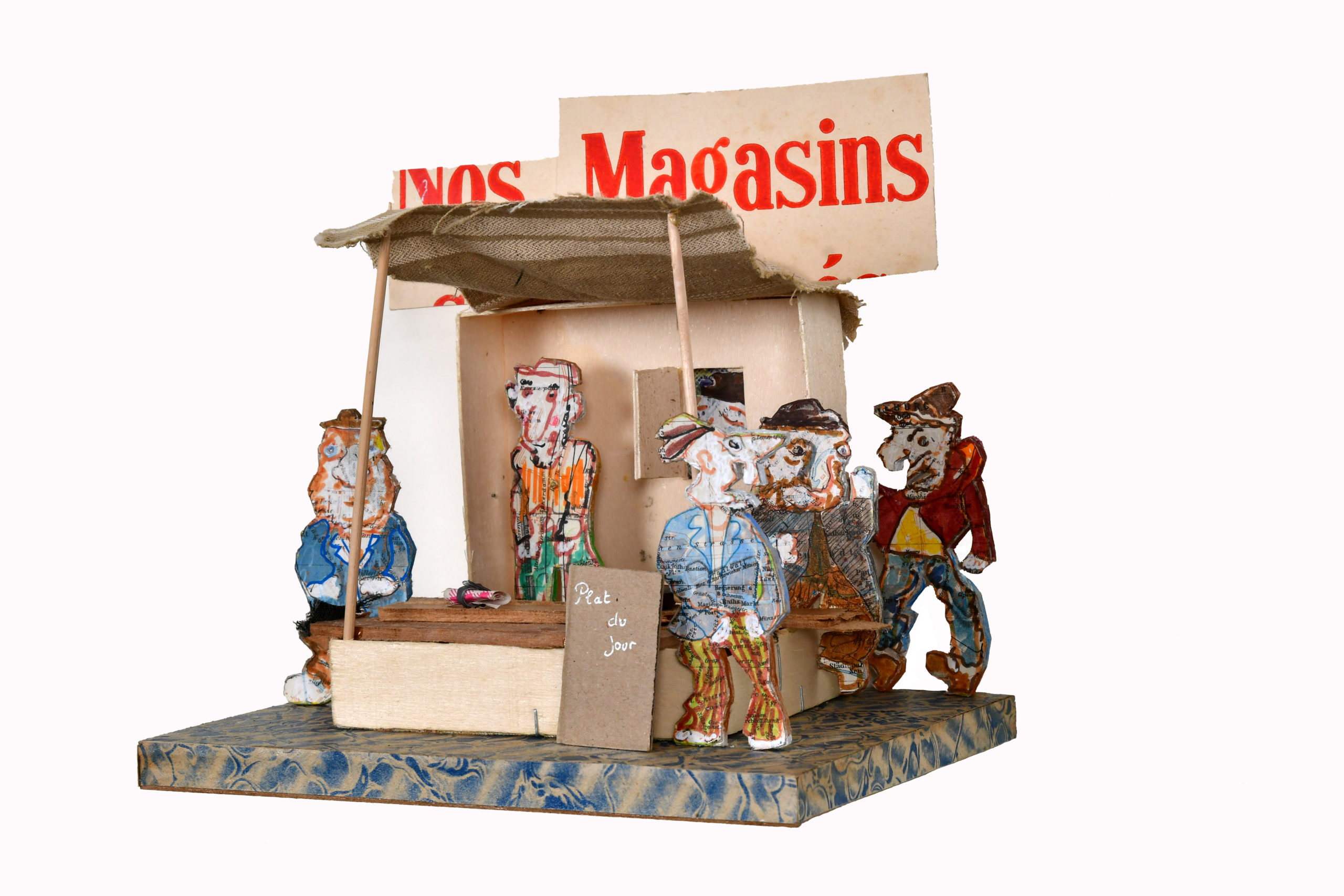 In Boites habitées, De bric et de broc, Dernières créations Je me suis toujours méfié de la profusion de moyens : belles couleurs, beaux papiers, etc…Toutes mes réalisations sont comme un éloge de la contrainte. C’est dans le dénuement, la banalité des matériaux que se trouve aussi la solution à la création. 5- La petite dame de la loterie