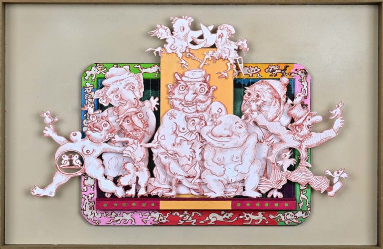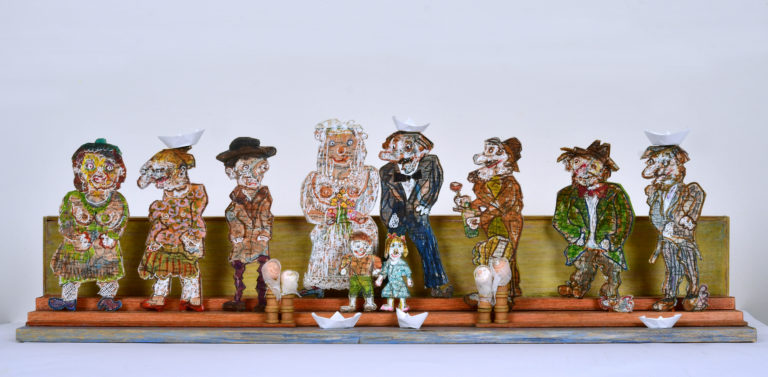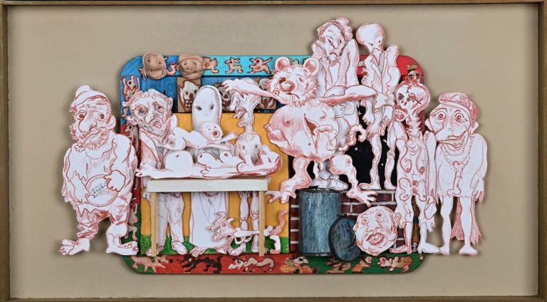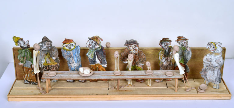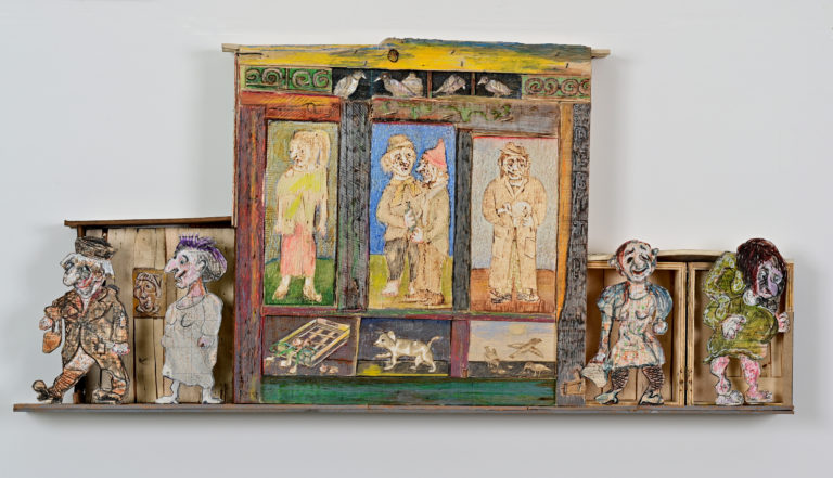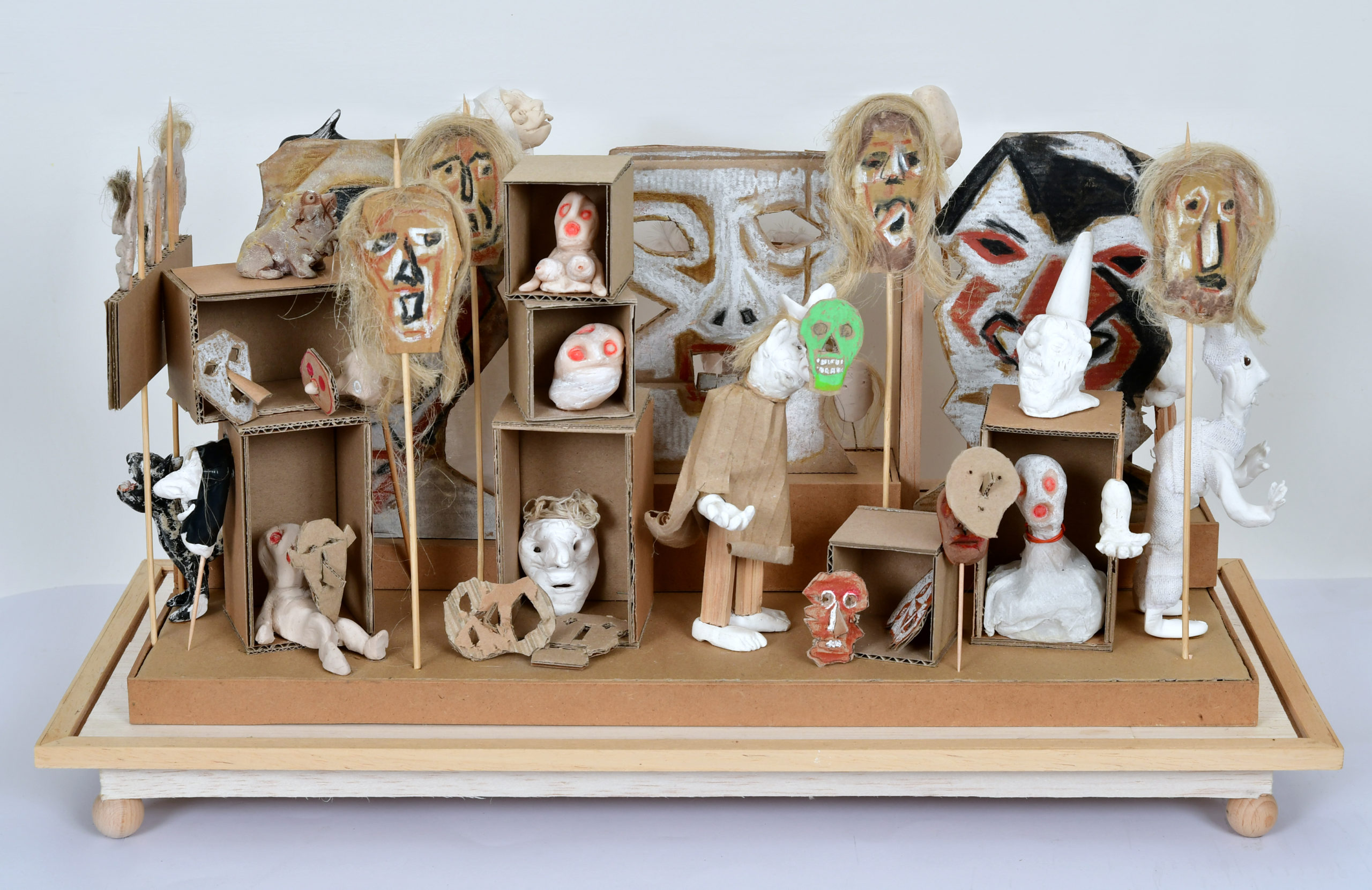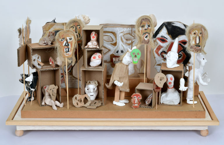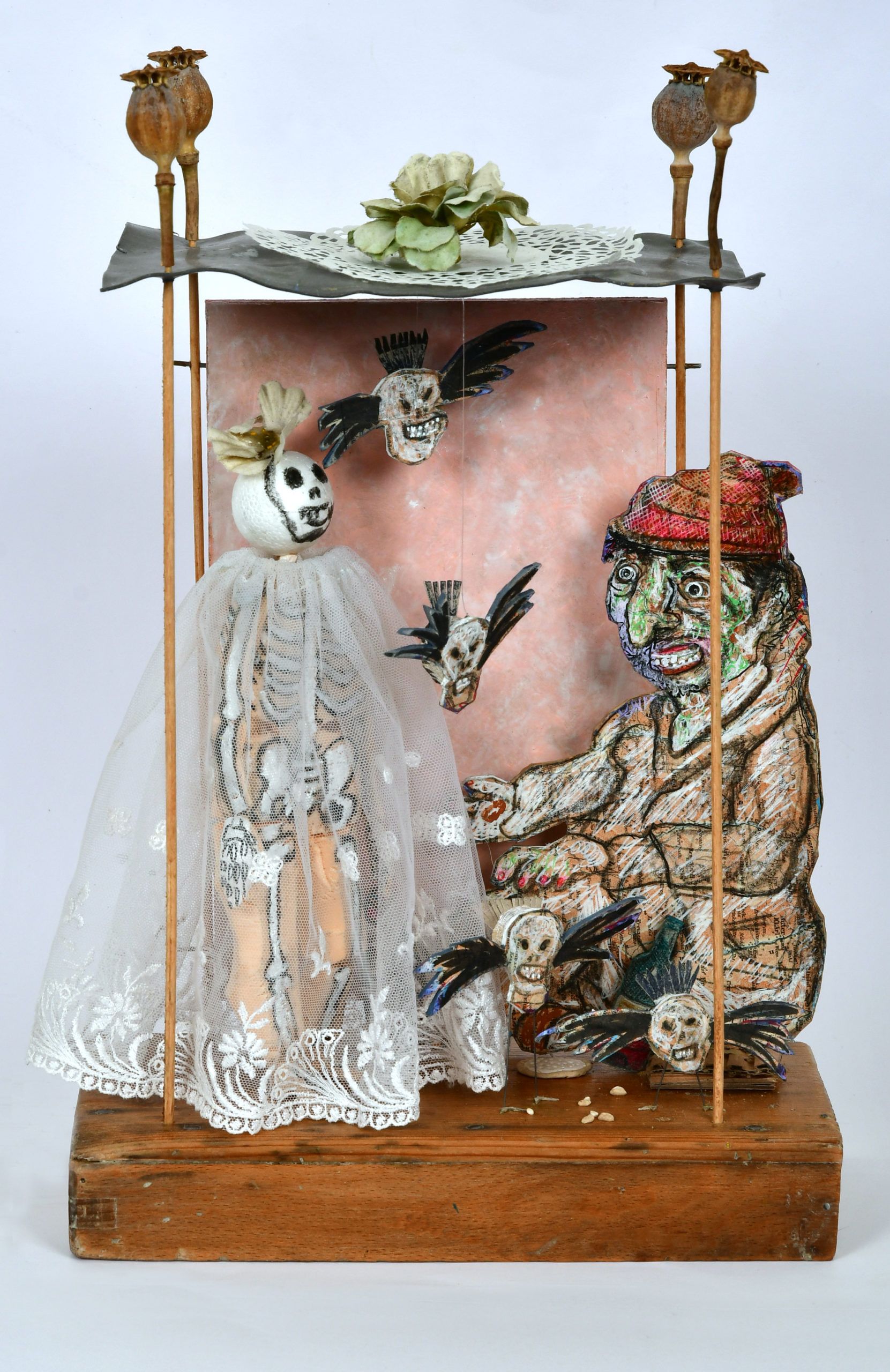 In Boites habitées, De bric et de broc, Dernières créations Je me suis toujours méfié de la profusion de moyens : belles couleurs, beaux papiers, etc…Toutes mes réalisations sont comme un éloge de la contrainte. C’est dans le dénuement, la banalité des matériaux que se trouve aussi la solution à la création. 5- La petite dame de la loterie