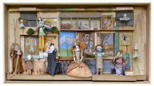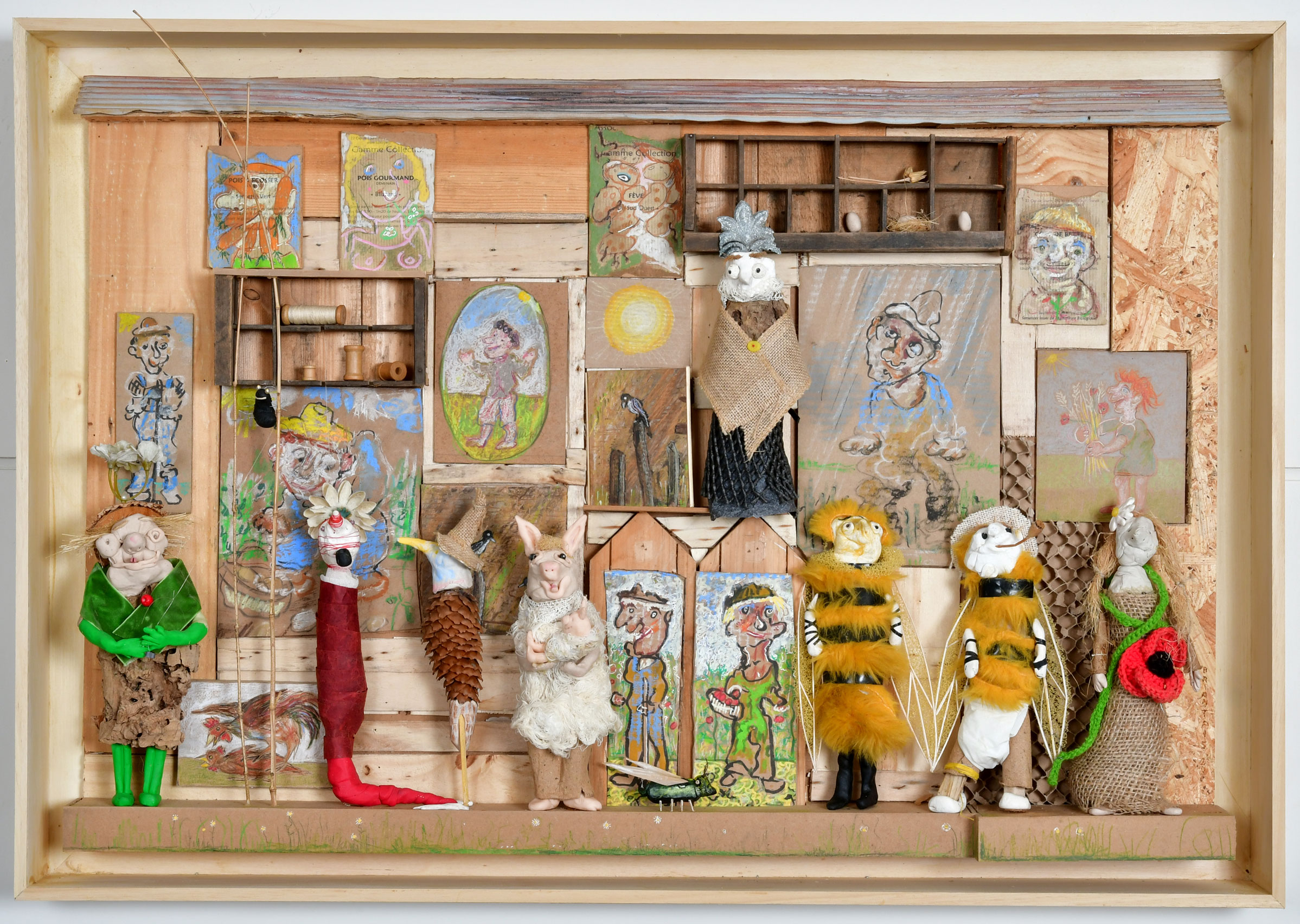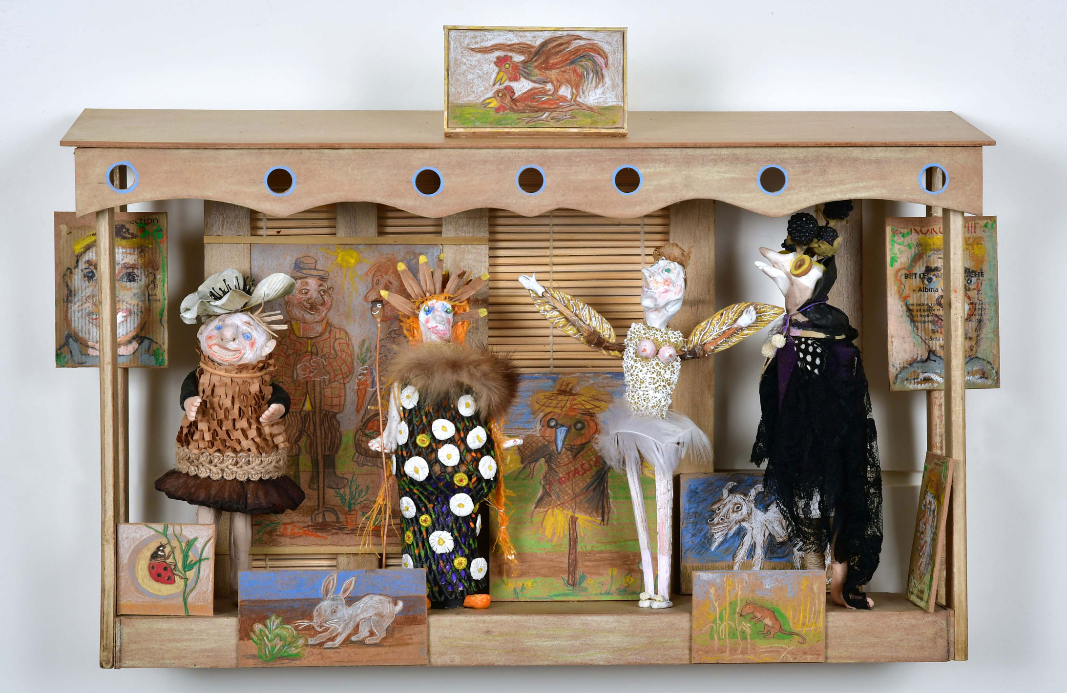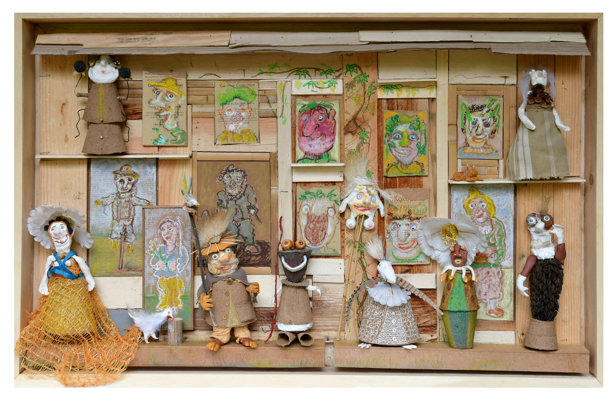 C’est avec ce « Ça peut toujours servir » que j’aime travailler. J’aime le bricolage, le rafistolage, le trois-fois-rien. Mes petits théâtres bucoliques sont une sorte d’hommage aux cabanons que l’on trouve dans les jardins ouvriers. C’est la poésie du peu, du banal, du précaire, du malgré-tout. C’est de l’ingéniosité et de la malice aussi.